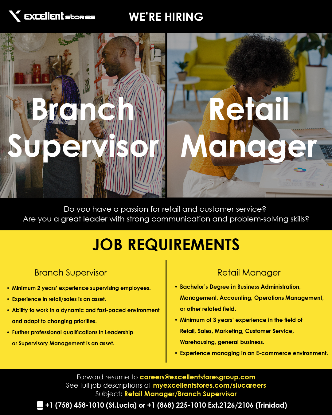 Excellent Stores are hiring a Branch Supervisor & Retail Manager