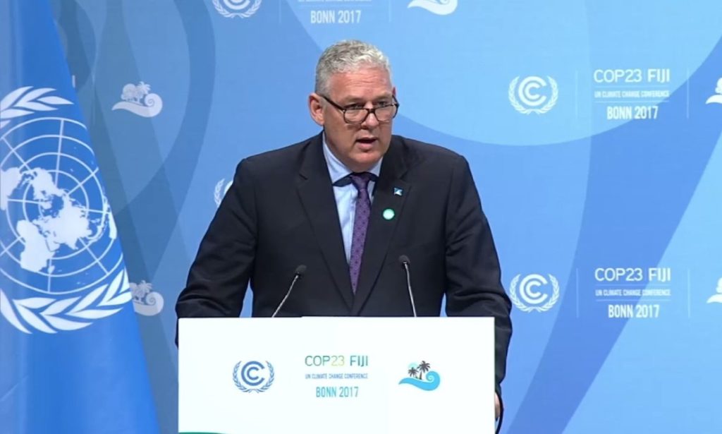 His Excellency Hon. Allen Michael Chastanet, Prime Minister of Saint Lucia, addresses the Joint High Level Segment at COP23 in Bonn, Germany.