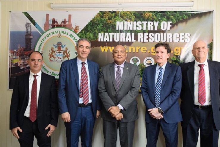 MINISTER OF NATURAL RESOURCES RAPHAEL TROTMAN (CENTRE) WITH OFFICIALS FROM ITALIAN OIL COMPANY ENI. GEORGETOWN, Guyana, Tuesday March 27, 2018 –...