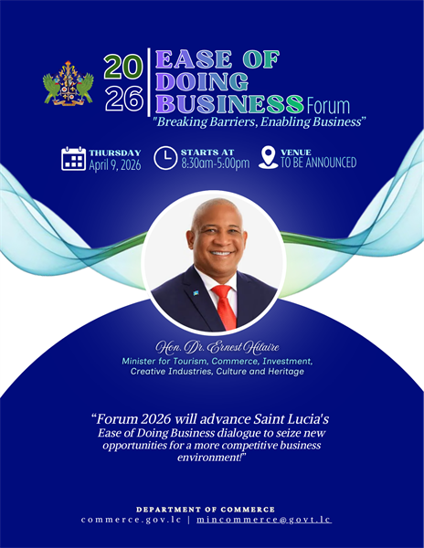 The Government of Saint Lucia continues to place high priority on improving the Ease of Doing Business (EODB) as part of its broader strategy to bolster the country’s investment climate and stimulate sustainable economic growth. Minister for Tourism, Commerce, Investment, Creative Industries, Culture and Heritage,Hon. Dr. Ernest Hilaire, has emphasized the Government’s critical role in supporting business growth and attracting impactful local and foreign investment opportunities.