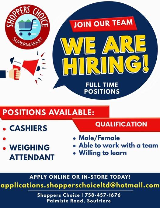 Vacancies for Cashiers and Weighing Attendant at Shoppers Choice