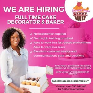 Vacancy for Cake Decorator & Baker at sweetemdelicacies